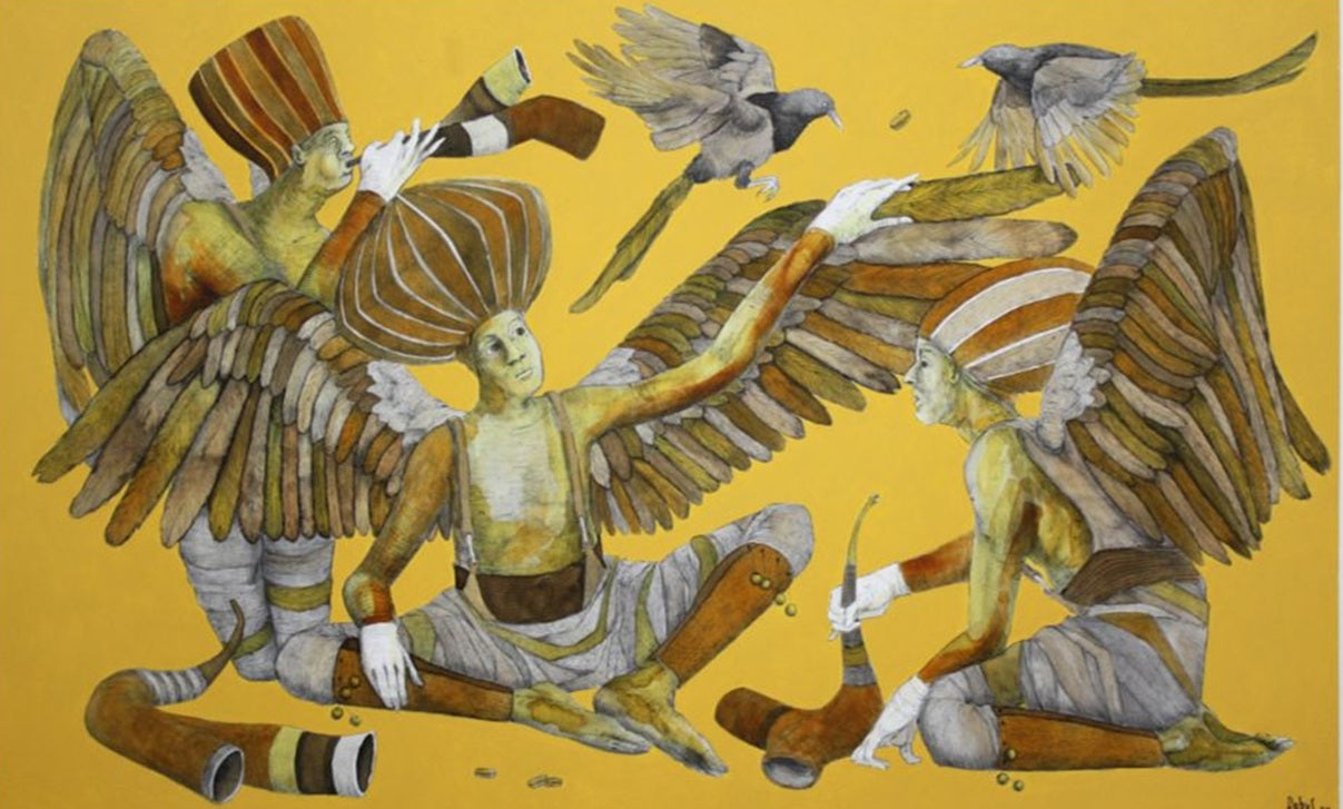 Pintura, bolígrafo, y acrílico sobre cartulina, 51 x 76 cm