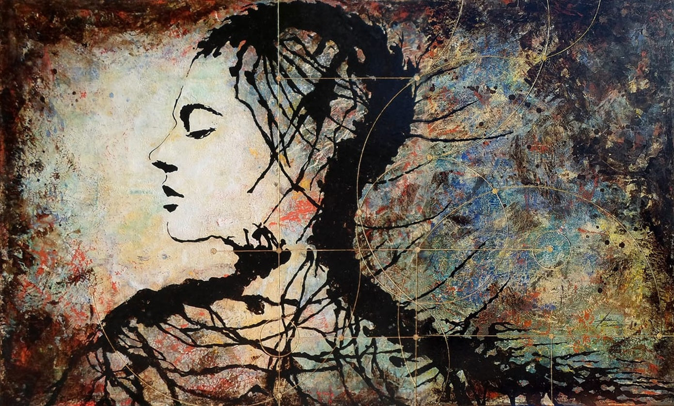 Pintura, encausto, óleo y pigmentos sobre madera, 122 x 200 cm