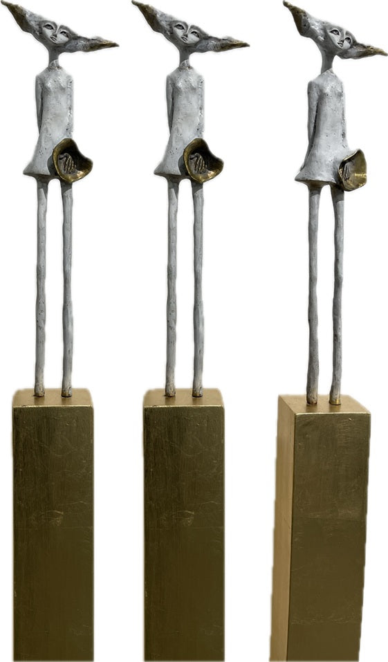 Escultura, Bronce, hoja de oro, madera y óleo, con base 1.70 x 70 x 21 cm (tres piezas)