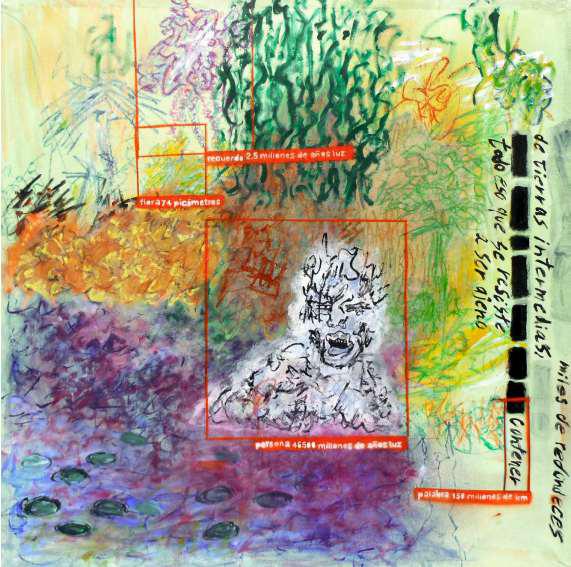 Pintura, Acrílico, crayola y pintura en aerosol sobre lienzo, 92 x 92 cm
